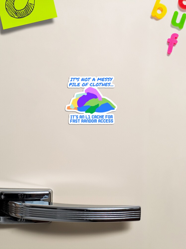 It’s not a messy pile of clothes… It’s an L1 cache for fast random access! Finally, a design that explains your organizational system to the world. Perfect for computer science students, developers, and anyone who’s ever justified their mess with technical terminology.