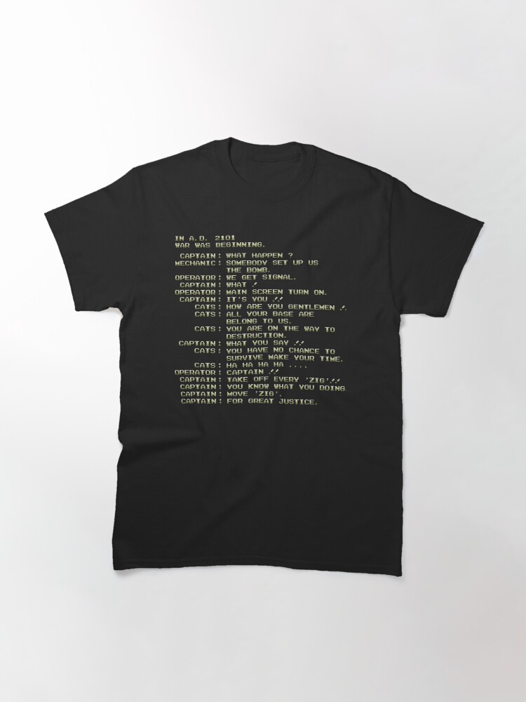 One of the most quoted video game intros of all time, now transcribed into t-shirt form. Because some translation disasters are too beautiful to forget.